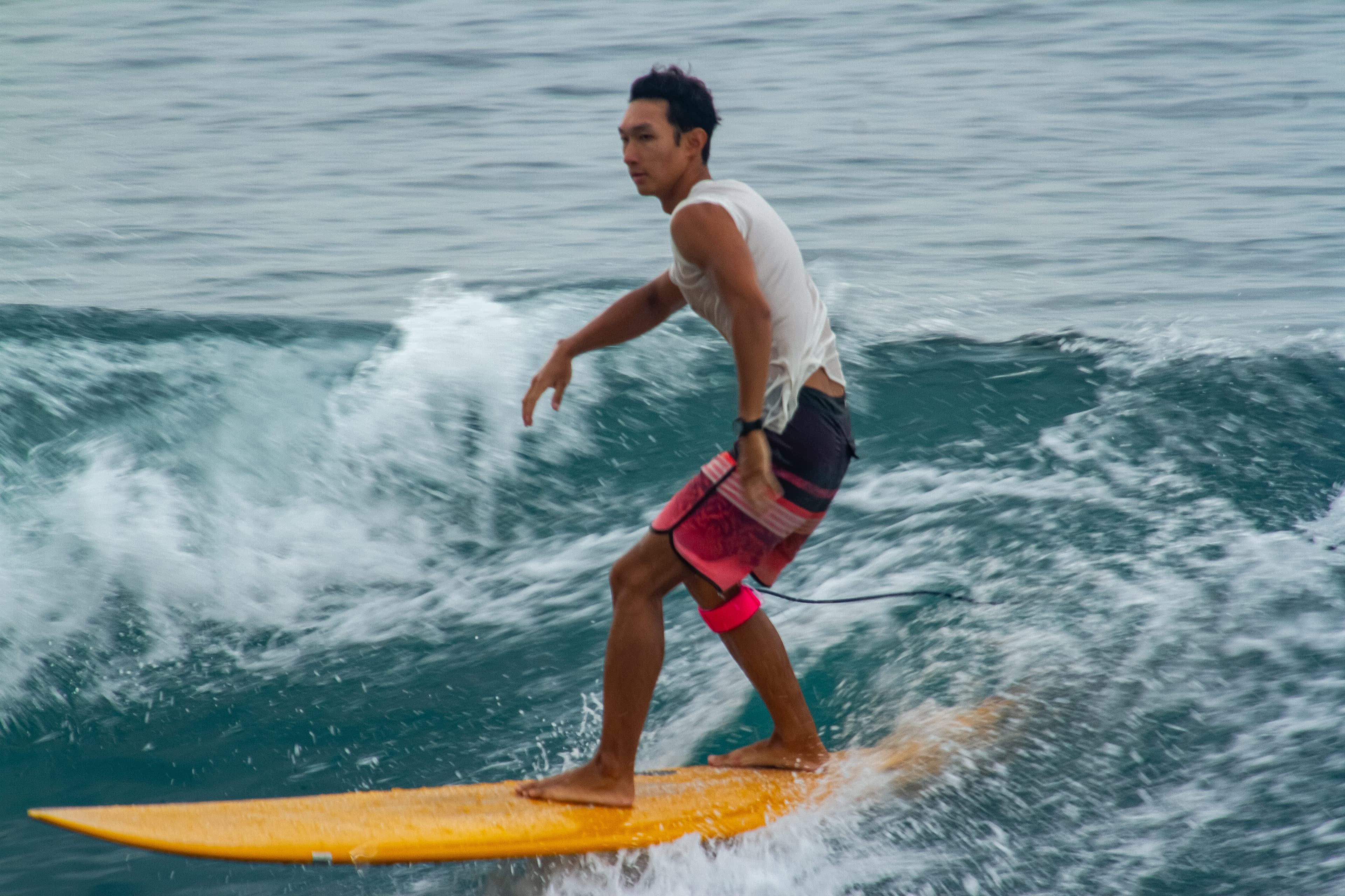 至於衝浪的技術精進,一開始可以請教練、報名團體課程,了解衝浪規則、同儕間互相勉勵成長,過了三個月通常可以大致上理解這項運動。